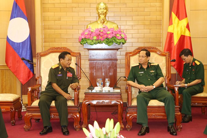 Lt. Gen. Tran Quang Phuong, Deputy Director of the General Department of Politics of the Vietnam People’s Army, received Maj. Gen. Bunlieng Sengphachan of the General Department of Politics of the Lao People’s Army yesterday.
