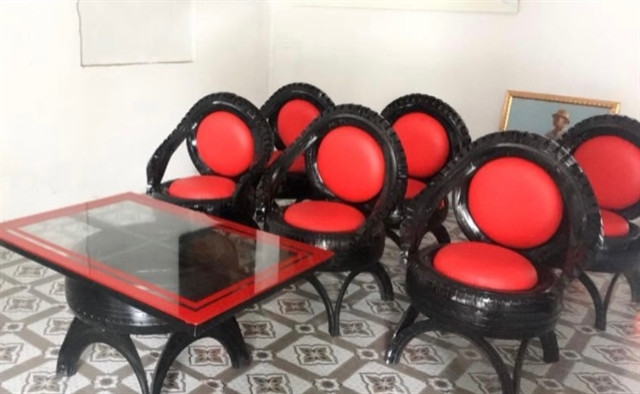 | A set of table and chairs created by Triệu from used tyres. Photo courtesy of Nguyễn Thành Triệu |