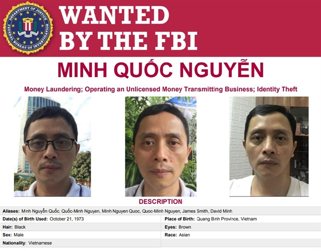 | The notice of a Vietnamese man wanted by the FBI in a money laundering scheme. — Photo courtesy of US FBI |