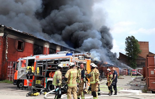 A blaze broke out at a 5,000m2 warehouse of the Dong Xuan Centre – a Vietnamese market in Berlin, Germany – on July 4, with smoke seen at a distance of several kilometres away.
