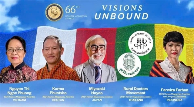 | Nguyễn Thị Ngọc Phượng (left-most) is one of the five winners of the 2024 Ramon Magsaysay Award for her dedication to help Agent Orange victims. — Photo from Ramon Magsaysay Award |