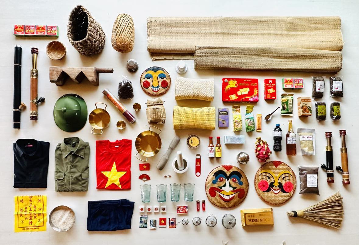 During his days in Hanoi, he collected items from Vietnam, such as mu coi (soldier’s hat worn by Vietnamese People’s Army officers), dieu cay (farmer’s pipe), mat na (facial mask), choi (straw broom) chieu (sleeping mat), and a paper-made horse.