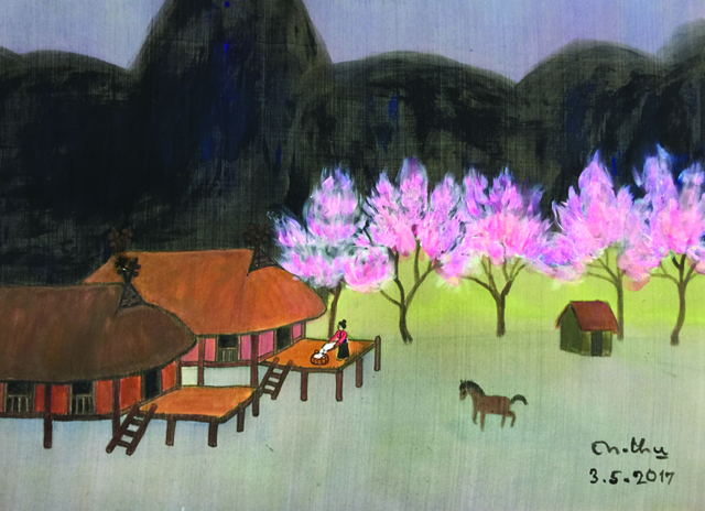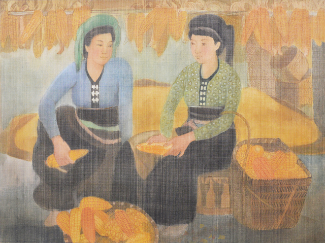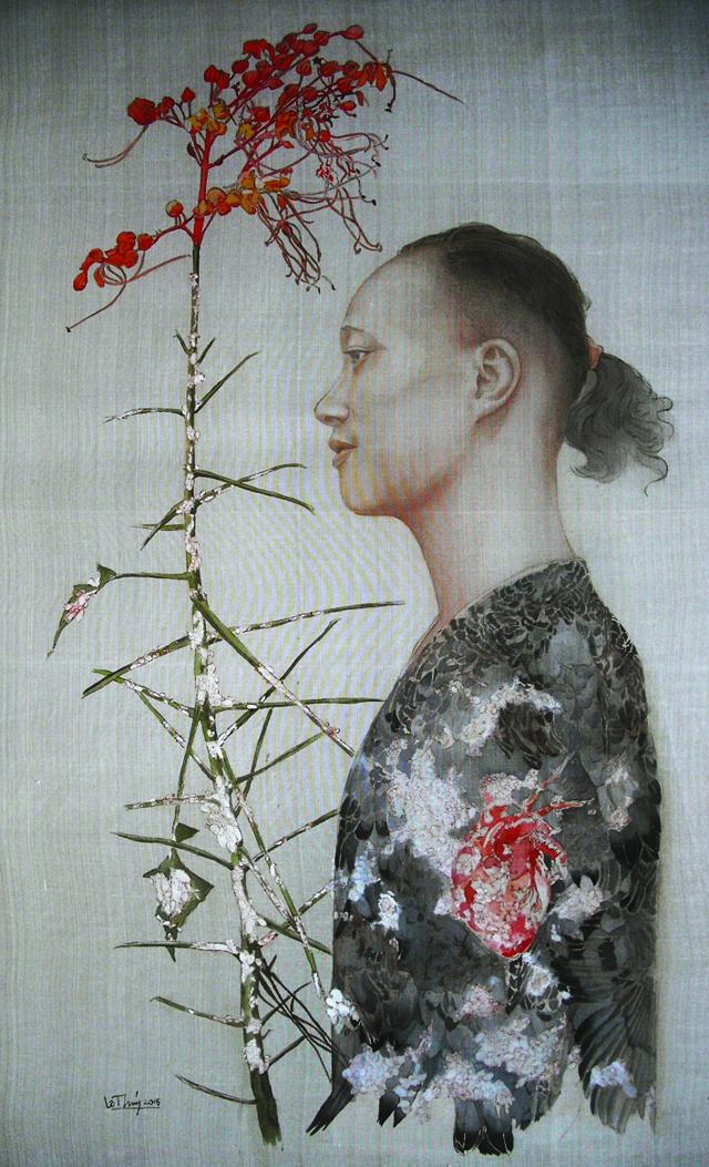 The exhibition introduces 40 silk paintings by 29 Vietnamese painters from different generations, from the late artist Nguyen Tien Chung (1914-1976), a graduate of the Indochina Fine Arts College, now the Vietnam University of Fine Arts, to veteran artists Vi Kien Minh, Lo An Quang and Nguyen Thu, together with younger painters Le Thuy, Lam Thanh, and Vu Dinh Tuan.