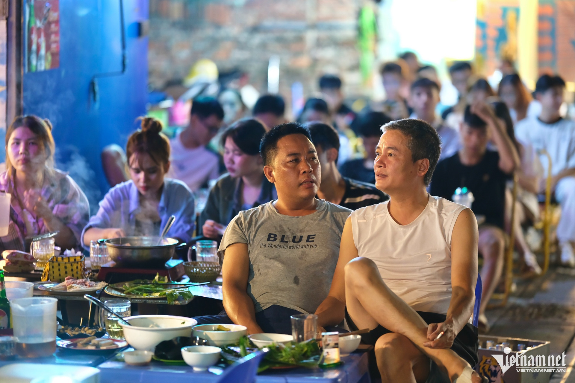 Men gather on the sidewalks in Hanoi and Ho Chi Minh City, setting up TVs to watch the match together.