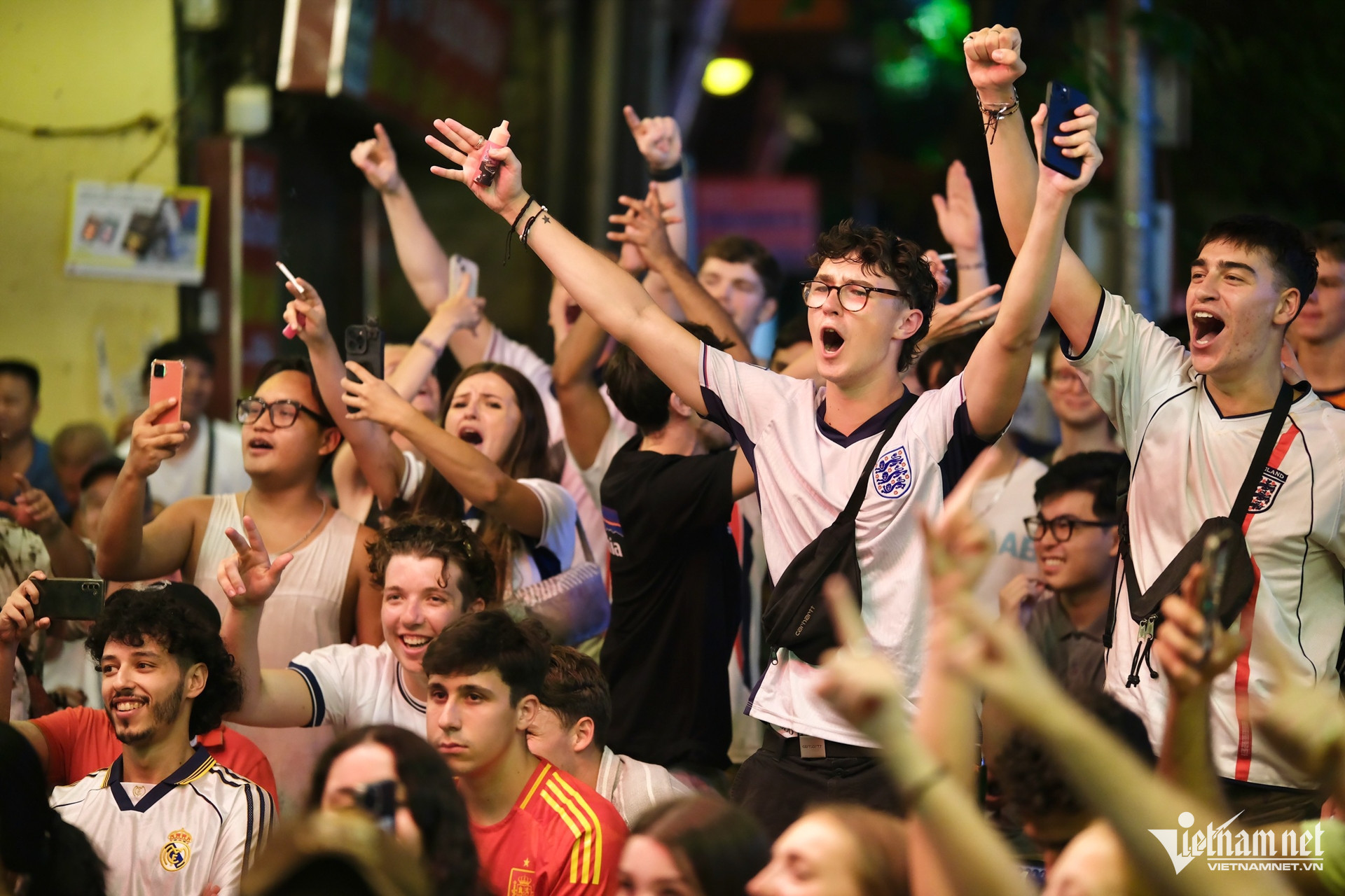 Photo: Fans gathered in Hanoi's Hang Buom street to watch the Euro 2024 final.