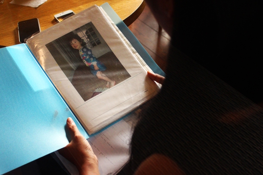 Huyen looks at a photo of her little daughter.