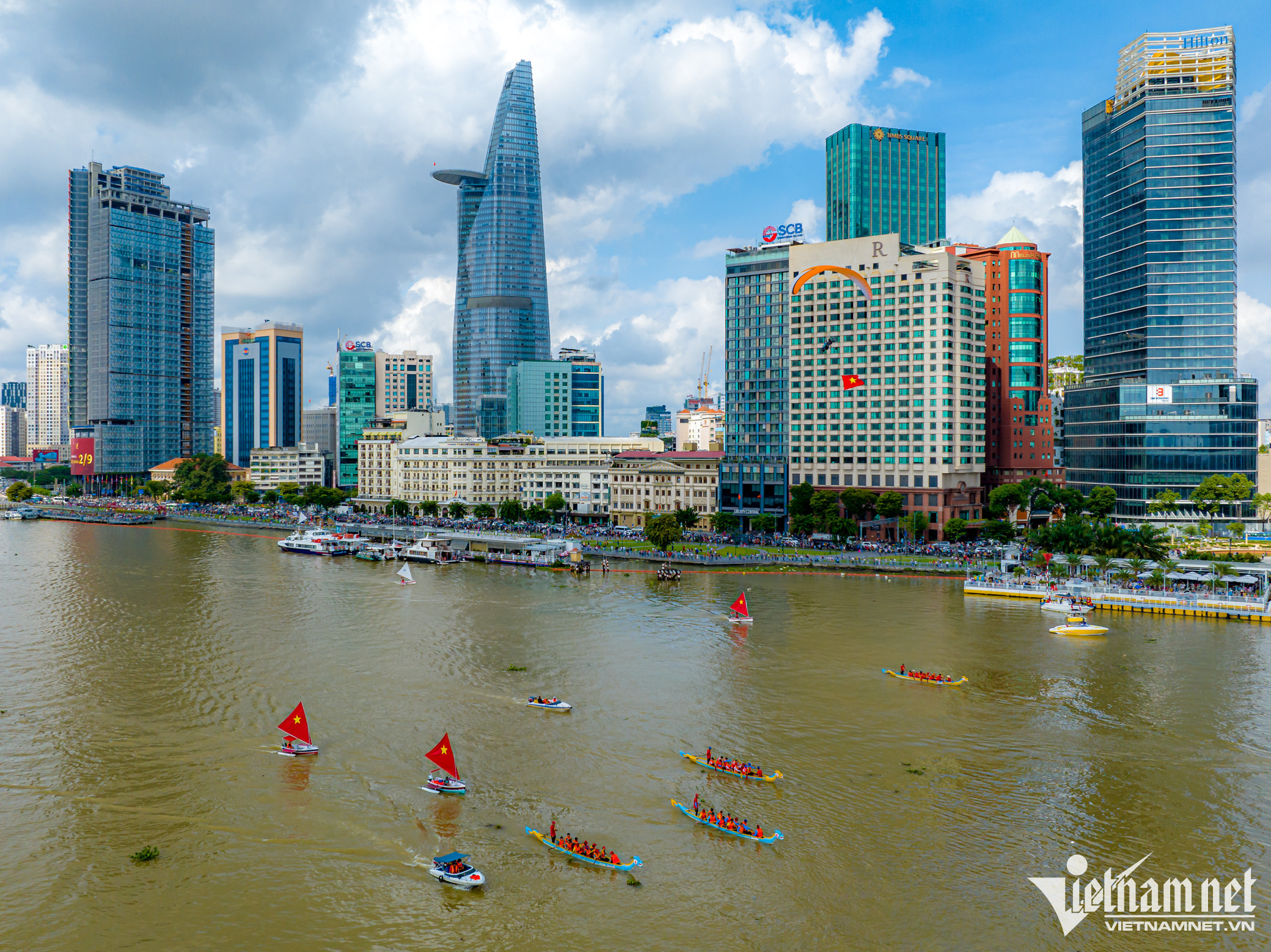 On September 2, many people in Ho Chi Minh City flocked to both sides of the Saigon River to see the 1,800m2 flag, which was pulled up by a hot air balloon to celebrate the National Day. This was a special activity within the framework of the "Independent Day” Festival in the city.