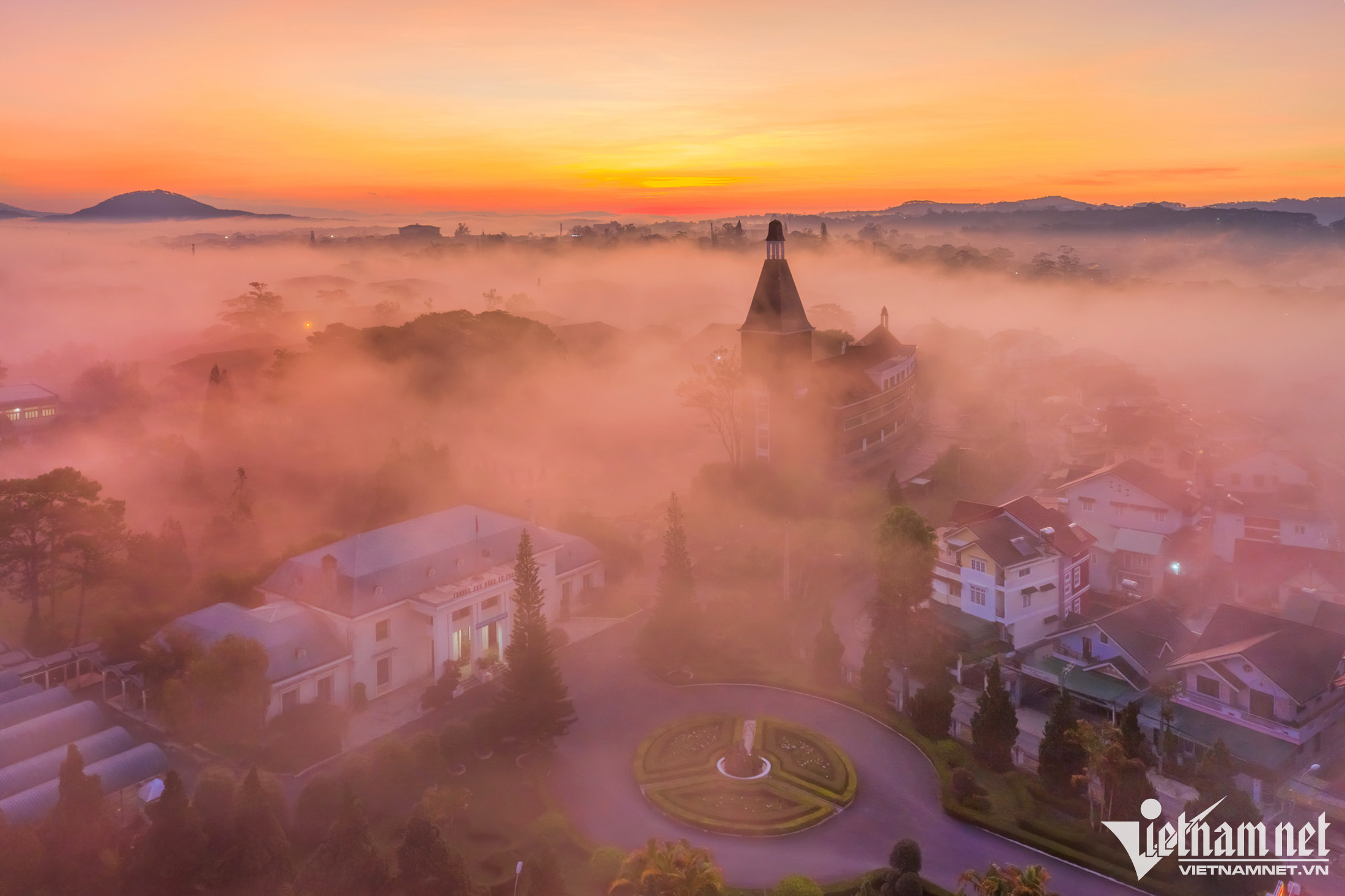 Xuan Huong Lake, Tuyen Lam Lake, Con Ga (Rooster) Church, Truc Lam Zen Monastery and many other landmarks in Da Lat appear beautifully in the early morning thanks to clouds and mist.