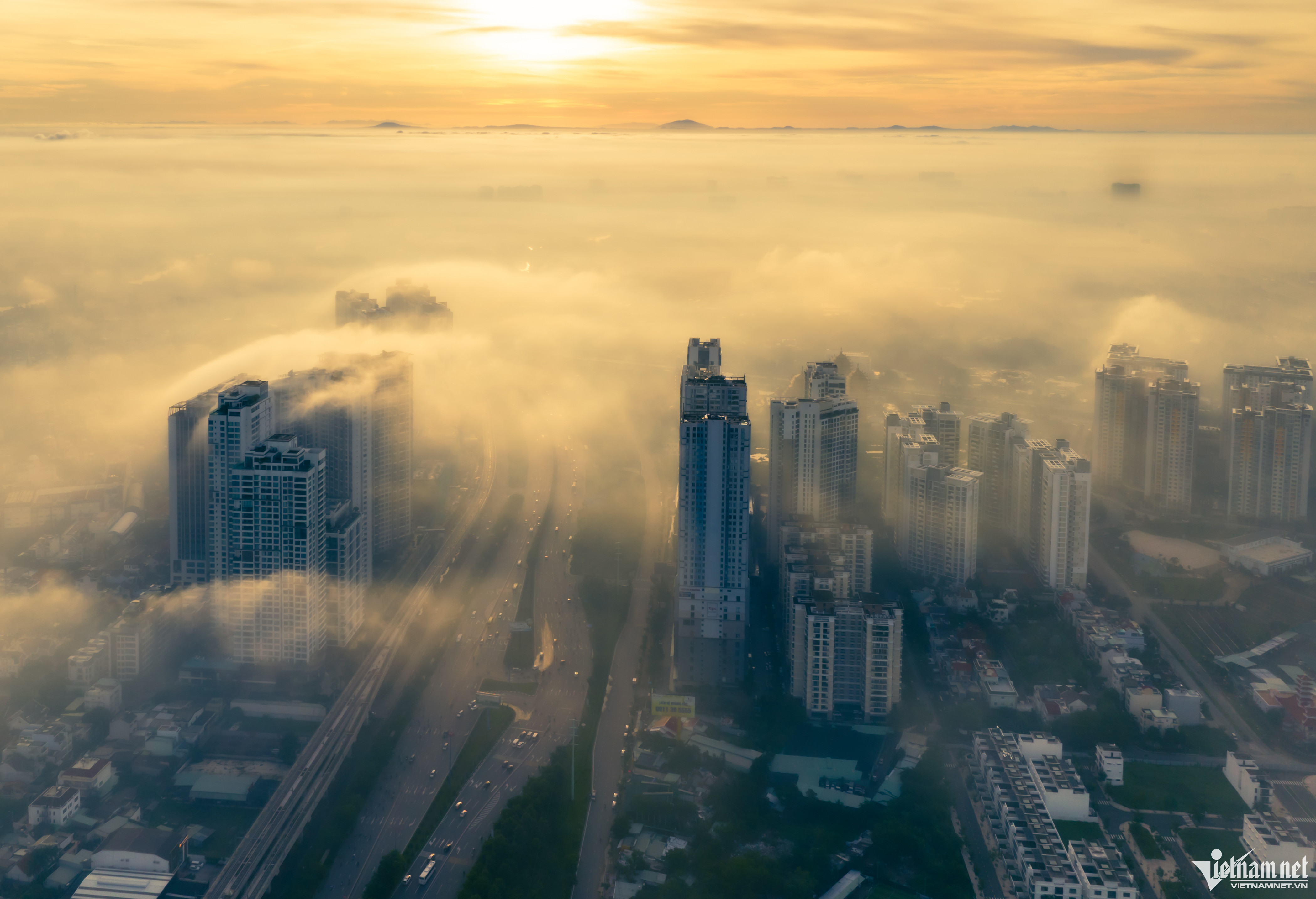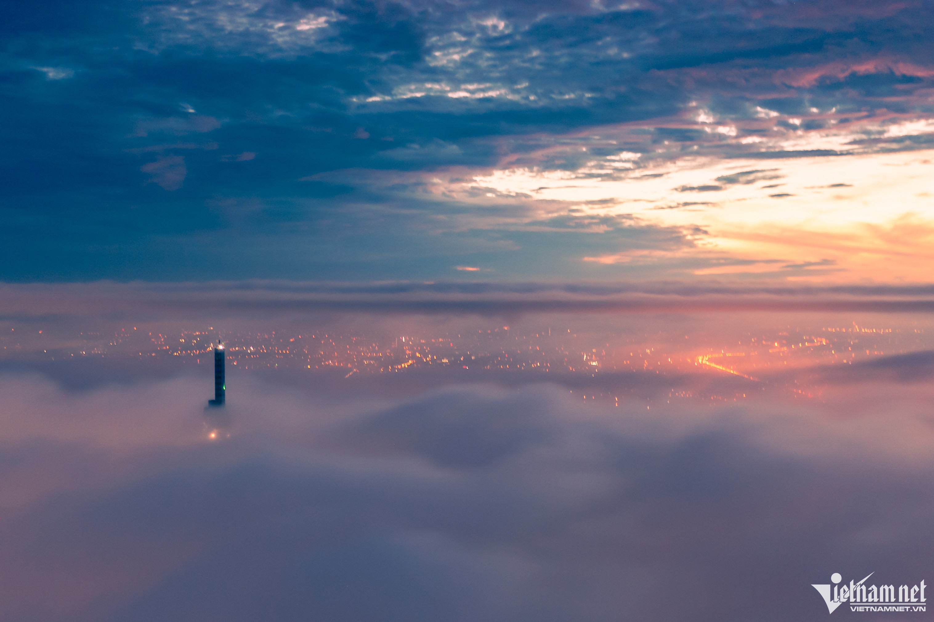 In the summer days of August, the sky of Ho Chi Minh City often has low clouds with mist, making the central districts appear as magical as watercolor paintings. The light emitted from the rays of the sun combined with the low clouds, the layer of fog covered, created a brilliant scene.