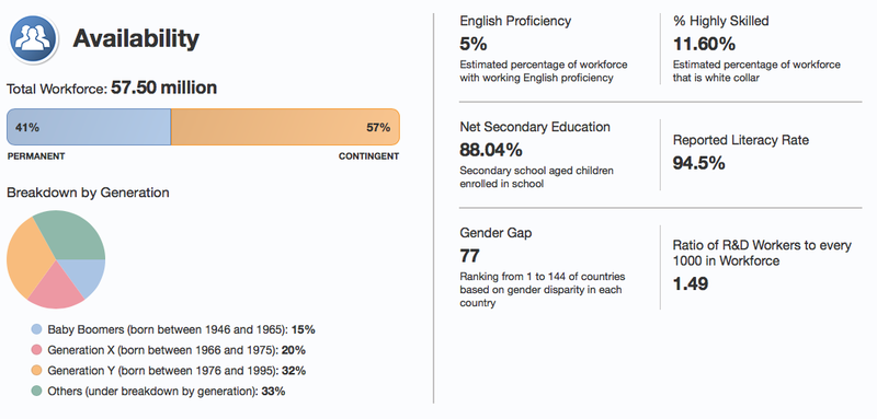 The TWI analyzes over 100 factors across 76 markets for a comprehensive and comparative view of four key factors: Workforce Availability, Cost Efficiency, Workforce Productivity and Regulation.