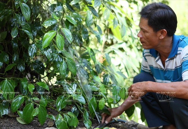 Bao has been involved in growing peppers for about 10 years and his farm has now more than 7,000 bushes, including 2,000 bushes for harvest. After expenditures, he earns a profit of some hundreds of million dong/year.