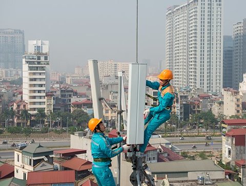 Workers test 5G services in Ha Noi . Viettel once again claimed the top spot as Viet Nam’s fastest mobile provider during the last quarter of 2021.