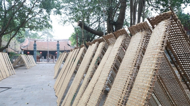 | Local people placed bamboo racks everywhere along the roads to the communal houses and pagodas. VNS Photo Trần Khánh An. |