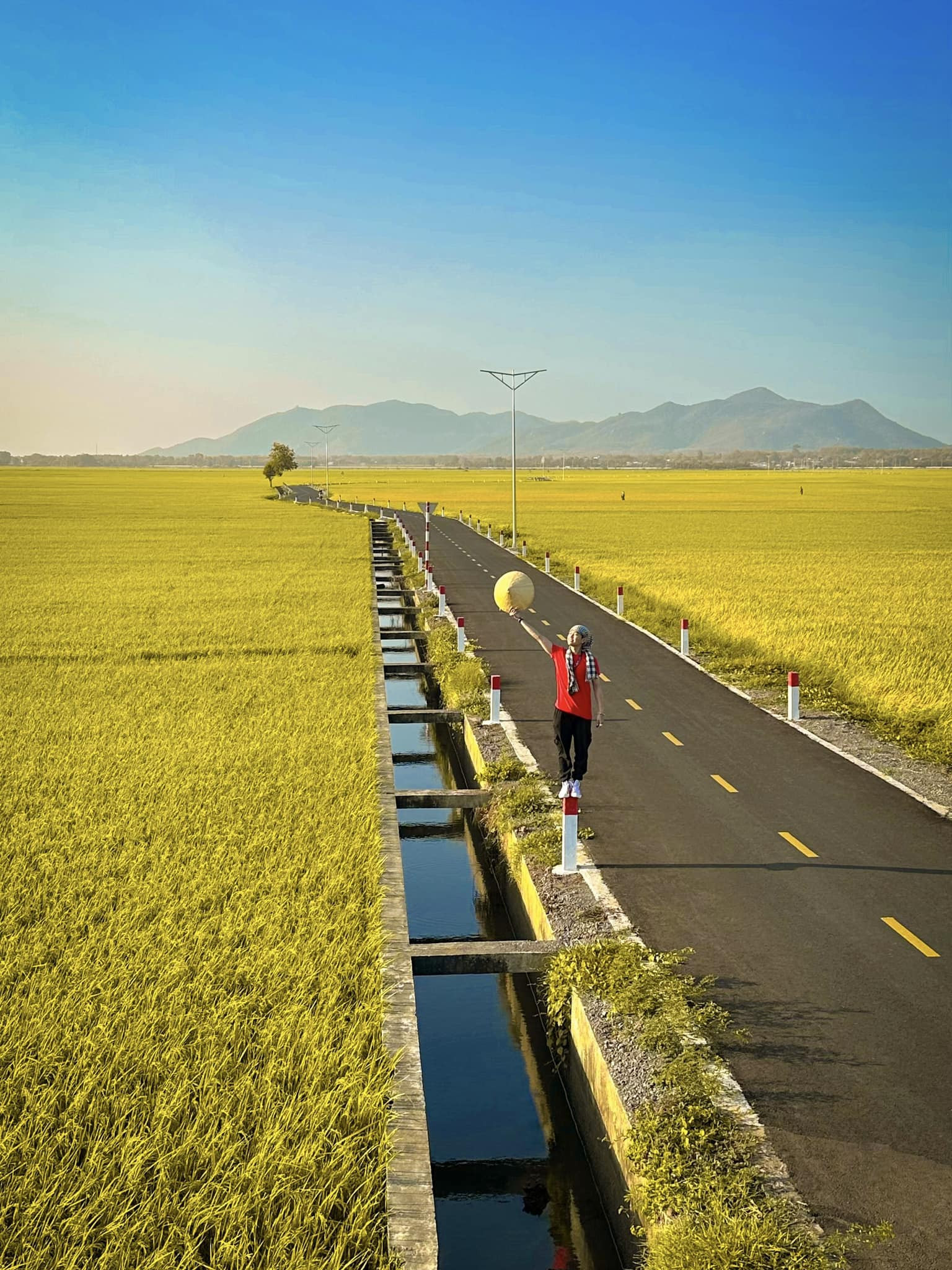 “I came here last year and, like many others, was captivated by the sight of a road stretching through endless golden rice fields,” he said. “This year, I returned and was lucky to witness the split-colored landscape - part golden, part lush green - under perfect weather. The light rays over the fields helped me capture many photos I truly love.”