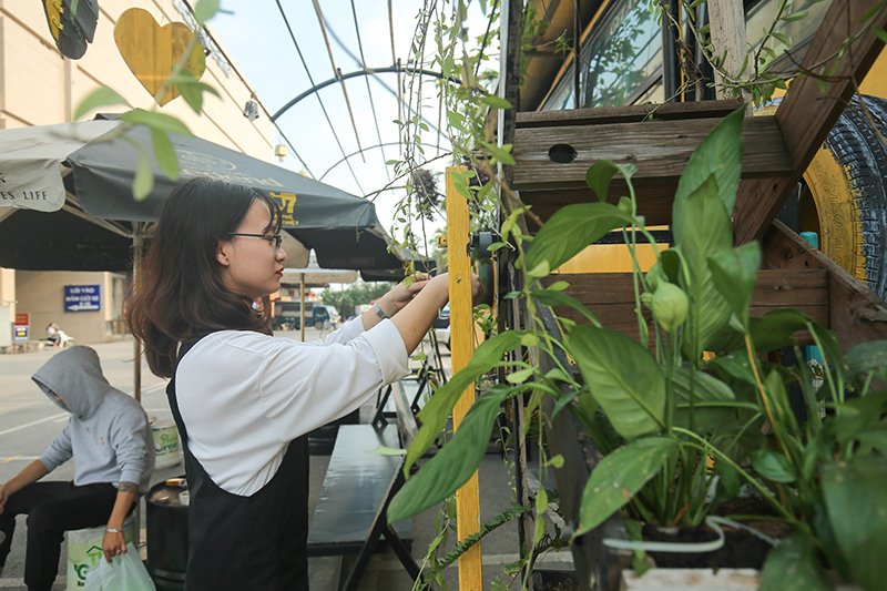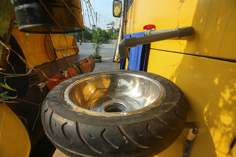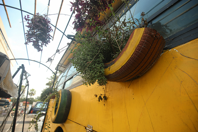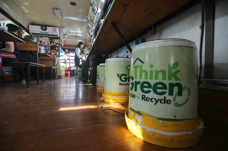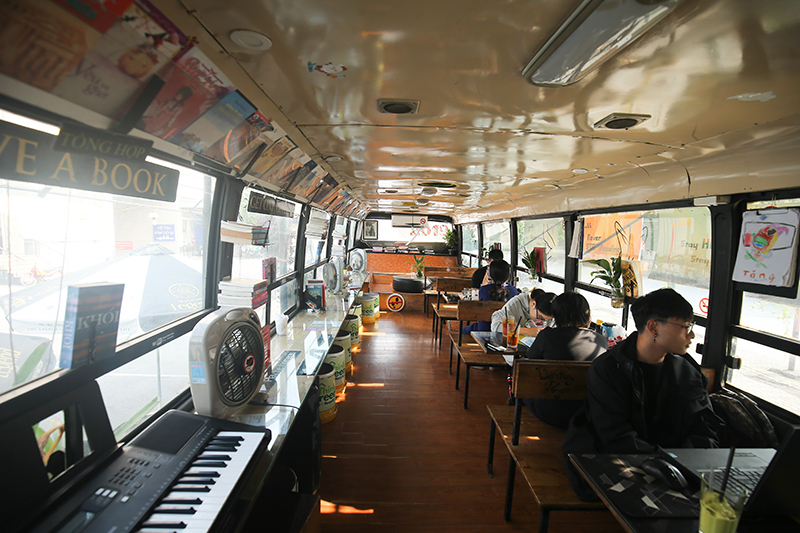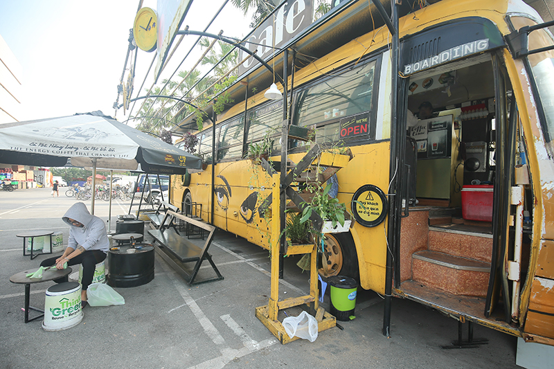 According to Sam, the idea of building a cafe that uses mostly recycled materials was born when he saw many abandoned buses during his vacation.