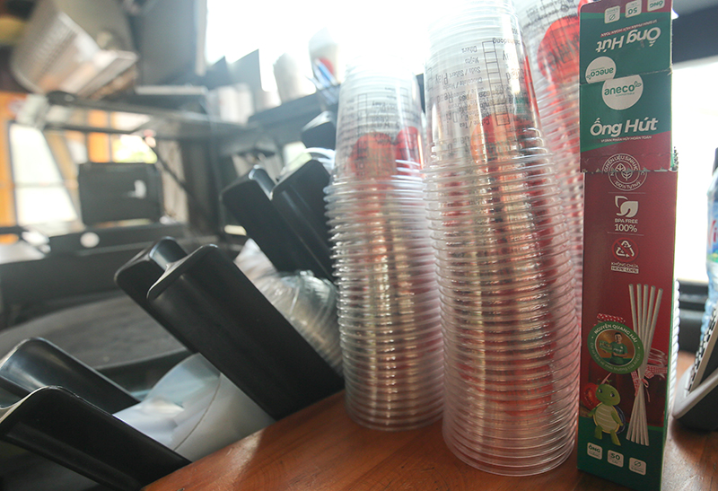 In the past, customers were provided with plastic cups for their take-away drink, but now they are placed with disposable cups and straws in order to reduce plastic waste into the environment.
