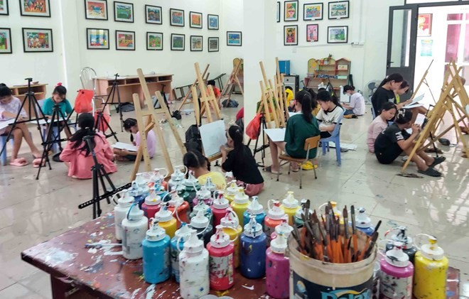 | Children gather to learn painting. Photo: VNA |
