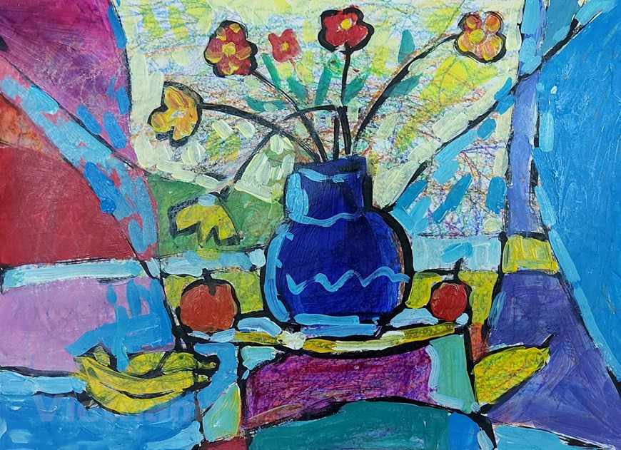 | A still-life painting of a little painter at Co Do Village. Photo: VNA |