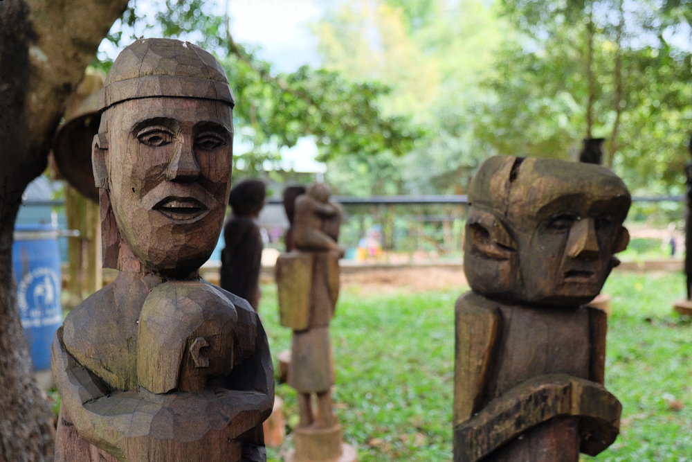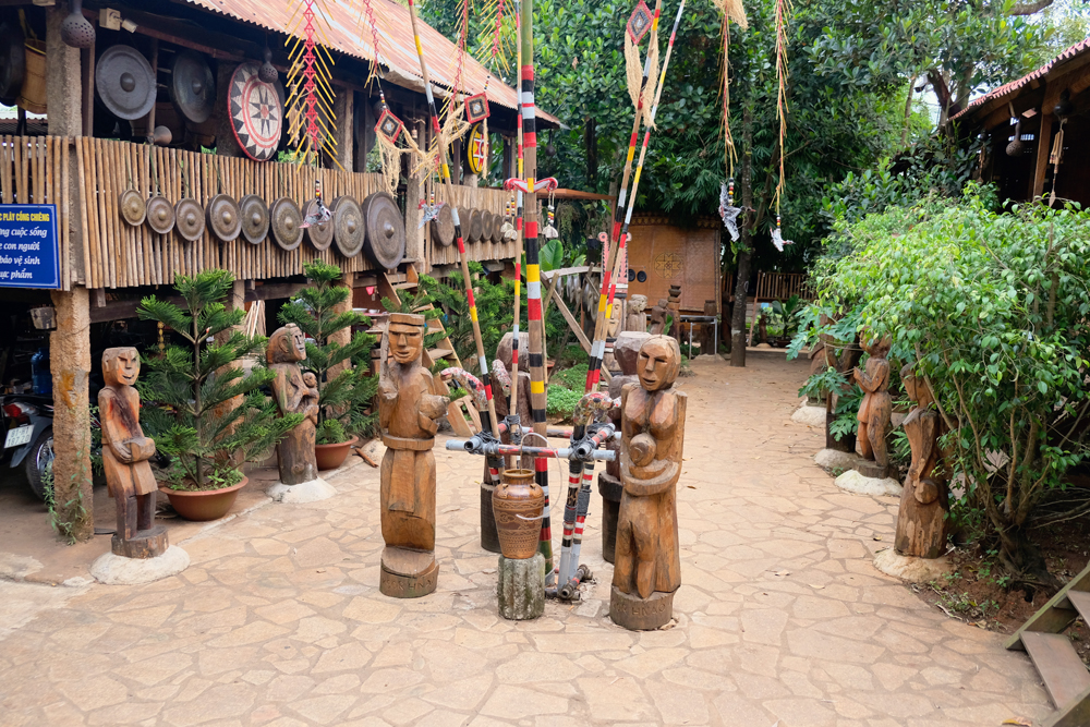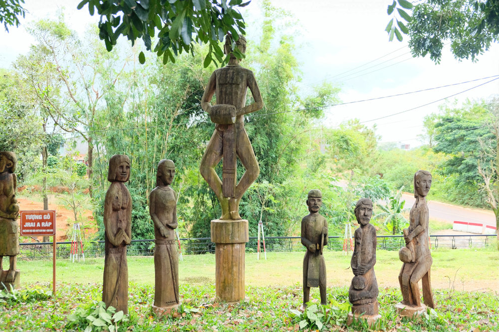 An area was set up on the left side of the yard to display wooden statues of Gia Rai and Ba Na ethnic groups. The artworks were made as the order of the city’s authorities to promote local culture and tourism.