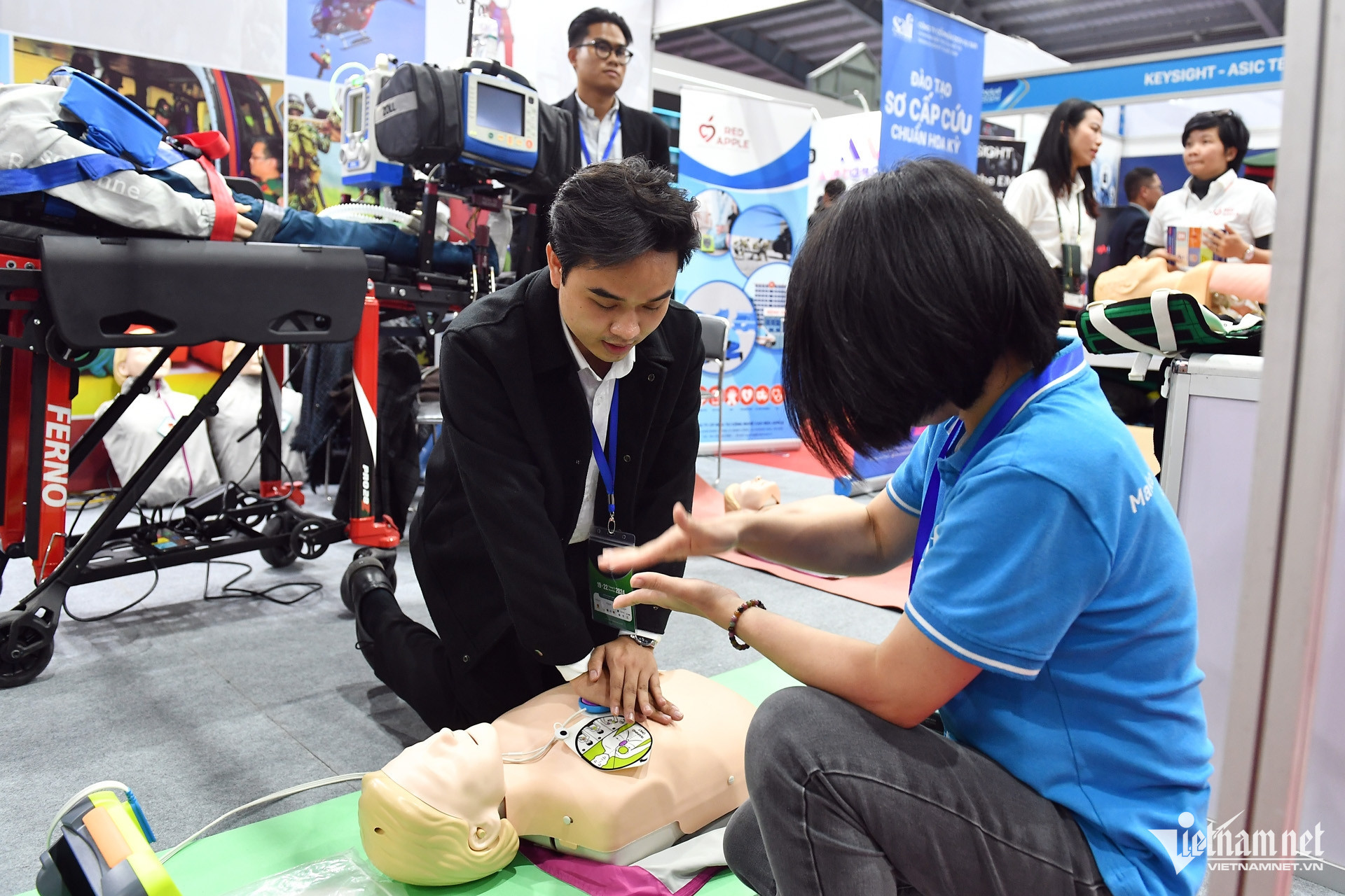 Exhibition visitors also had the opportunity to participate in basic first-aid training sessions conducted by a professional unit - the Vietnam branch of the American Heart Association's training division - aimed at proactive safety and emergency preparedness.