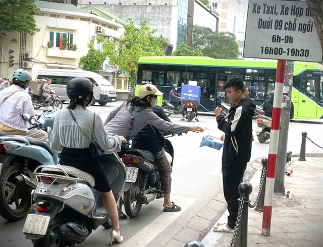 | Nguyễn Sỹ Phi Sang stands on Văn Miếu Street, Hà Nội to sell goods. — Photo dantri.com.vn |