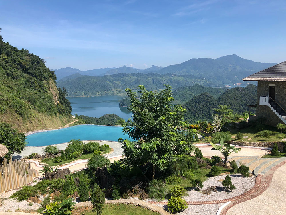 | The distinct jade colour of Hoa Binh Lake – one of the largest man-made reservoirs in Vietnam. |