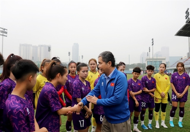 | VFF’s secretary general Dương Nghiệp Khôi encourages players of the Vietnamese women’s football U20 team. — Photo VFF |