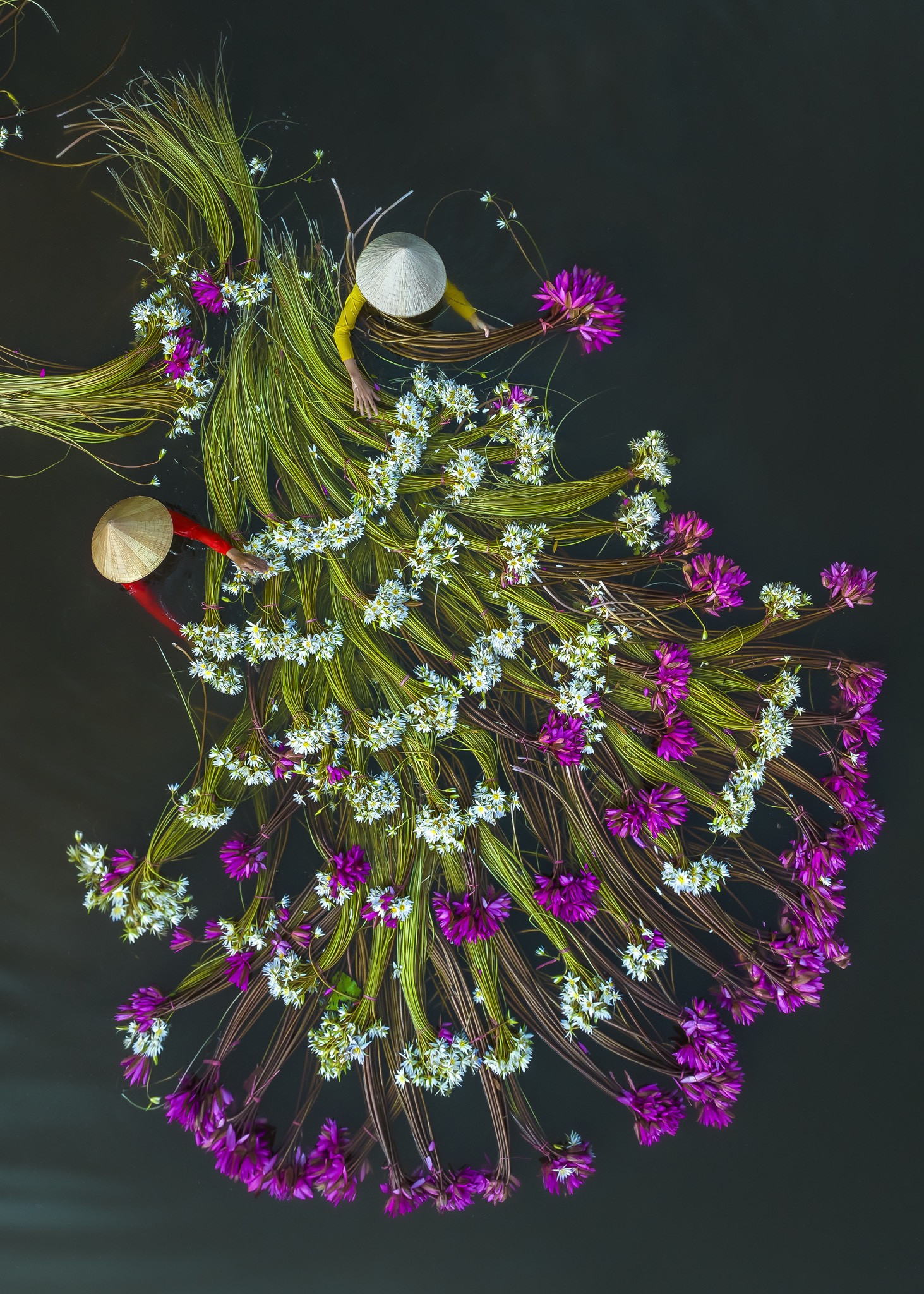 Most recently, Khanh Phan won the Grand prize of the Skypixel 2023 contest with the "Flower dress" photo taken in Moc Hoa, Long An, documenting the activities of women harvesting water lilies during the flood season in the South, forming a flower dress on the water.