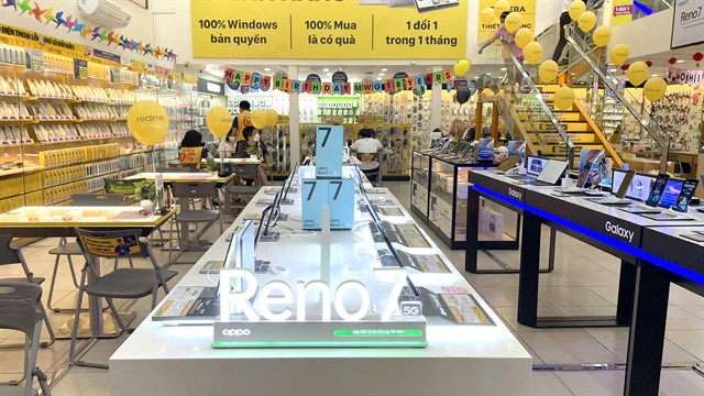 | Customers at a store of Mobile World Investment Corporation in Thái Hà Street, Hà Nội. The company's shares soared more than 4.3 per cent on Wednesday, supporting the rally trend. — VNS Photo Mai Hương |