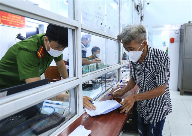 | A citizen fills some forms to register for temporary residence. — Photo thanhnienviet.vn |