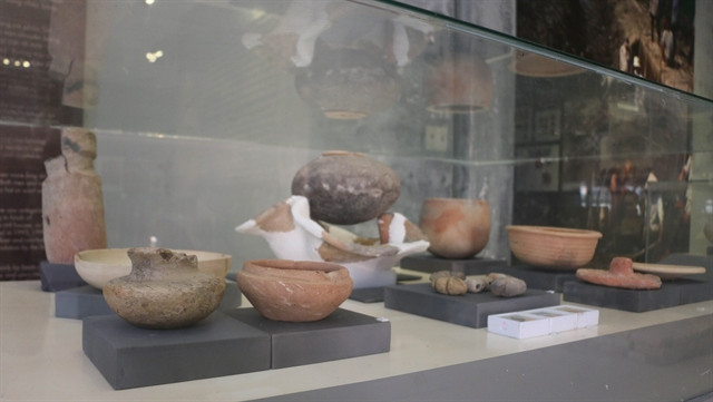 | ANCIENTS RELICS: Artefacts and antiques from Óc Eo Culture are displayed at the exhibition hall of the Óc Eo Cultural Relics Management Board in An Giang Province. — VNA/VNS Photo Công Mạo |