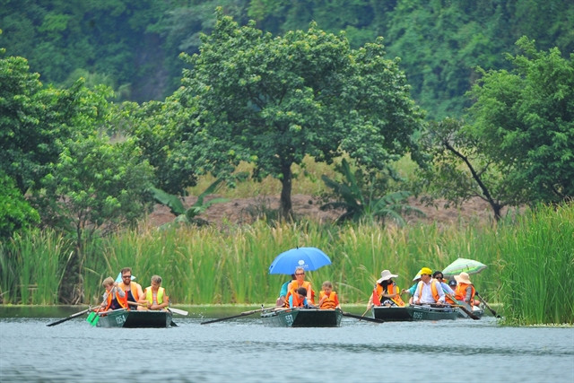Foreign tourists enjoy boat tours around the Tràng An tourism complex. |