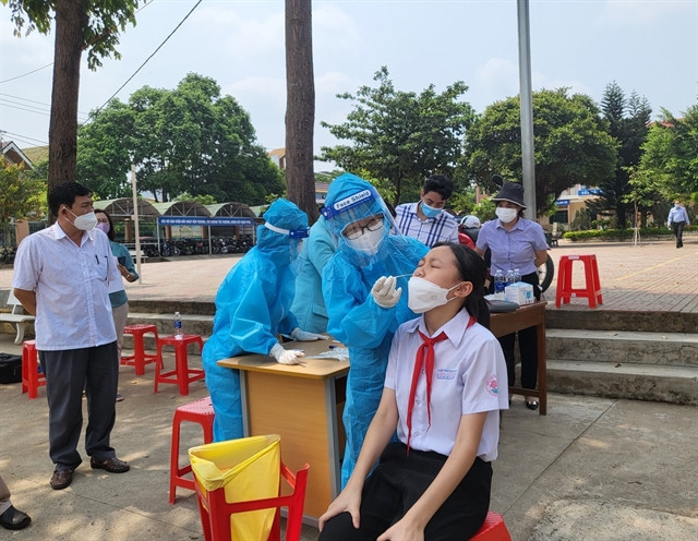 | Students at Trưng Vương Secondary High School in Buôn Ma Thuột City, Đắk Lắk Province, are tested for COVID-19 in April 2023 following the detection of a cluster of infections here. —VNA/VNS Photo Tuấn Anh |