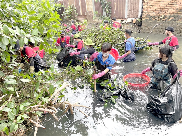 | Members of Biên Hòa Xanh Group pick up waste in a local canal in the southern province of Đồng Nai’s Biên Hòa City. VNA/VNS Photo Lê Xuân |