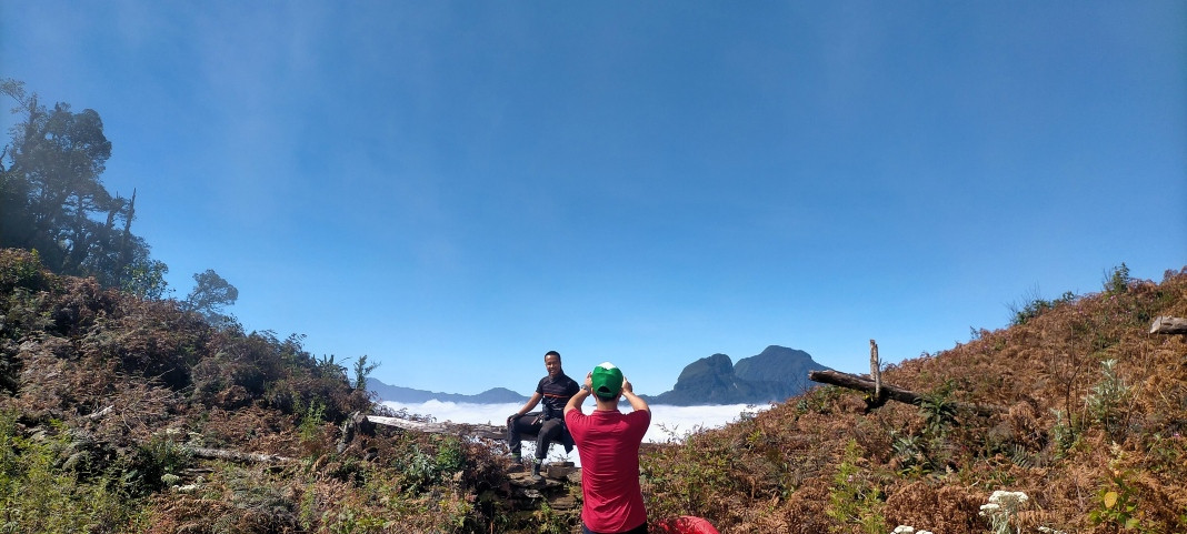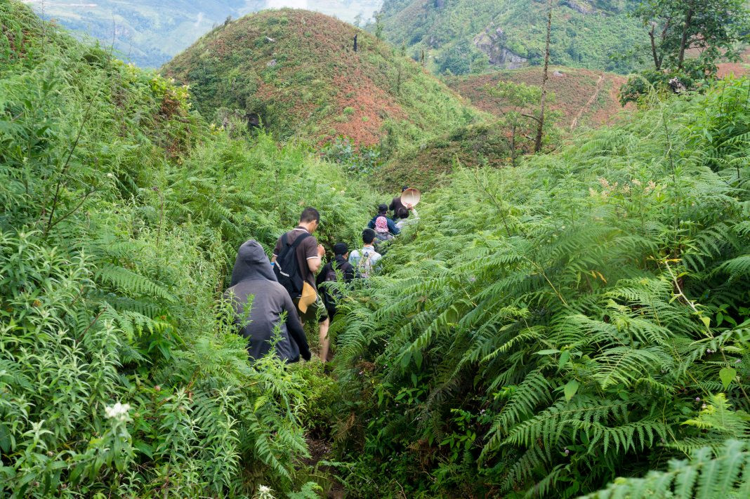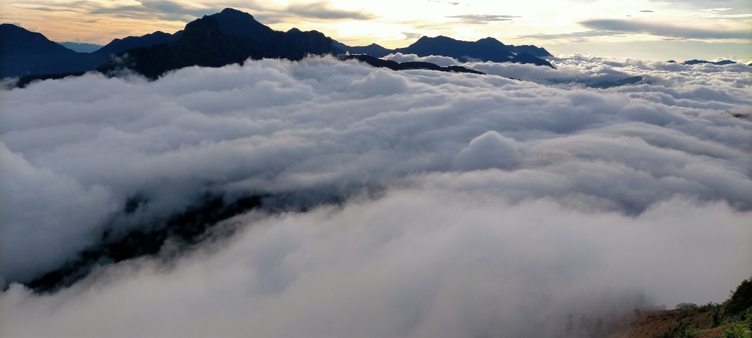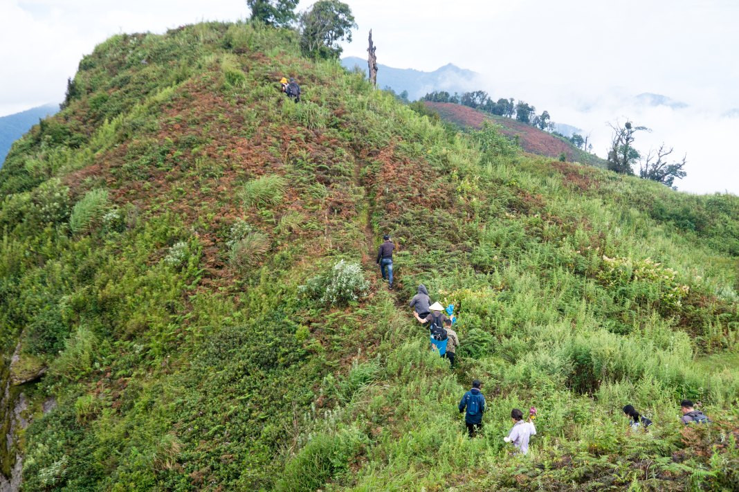 The trail to Lao Than Peak winds through expansive terraced slopes, dense ancient forests, and swirling clouds, captivating all who dare to tread. At 2,800 meters above sea level, adventurers feel as if they were walking on air, seamlessly merging with the heaven and earth amidst the expansive and grandiose panorama, immersing themselves in the natural splendor.