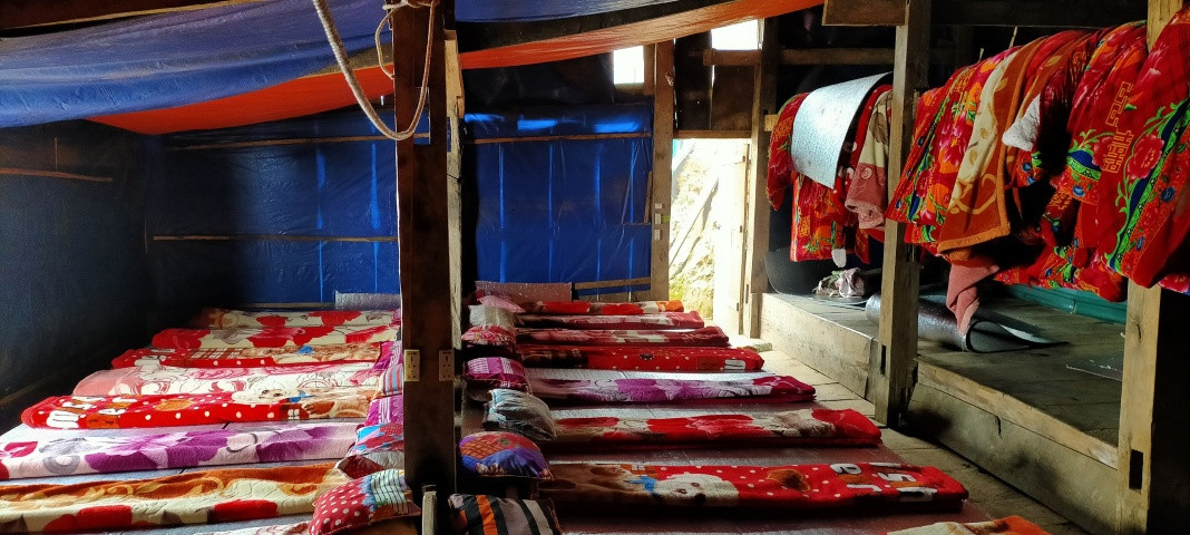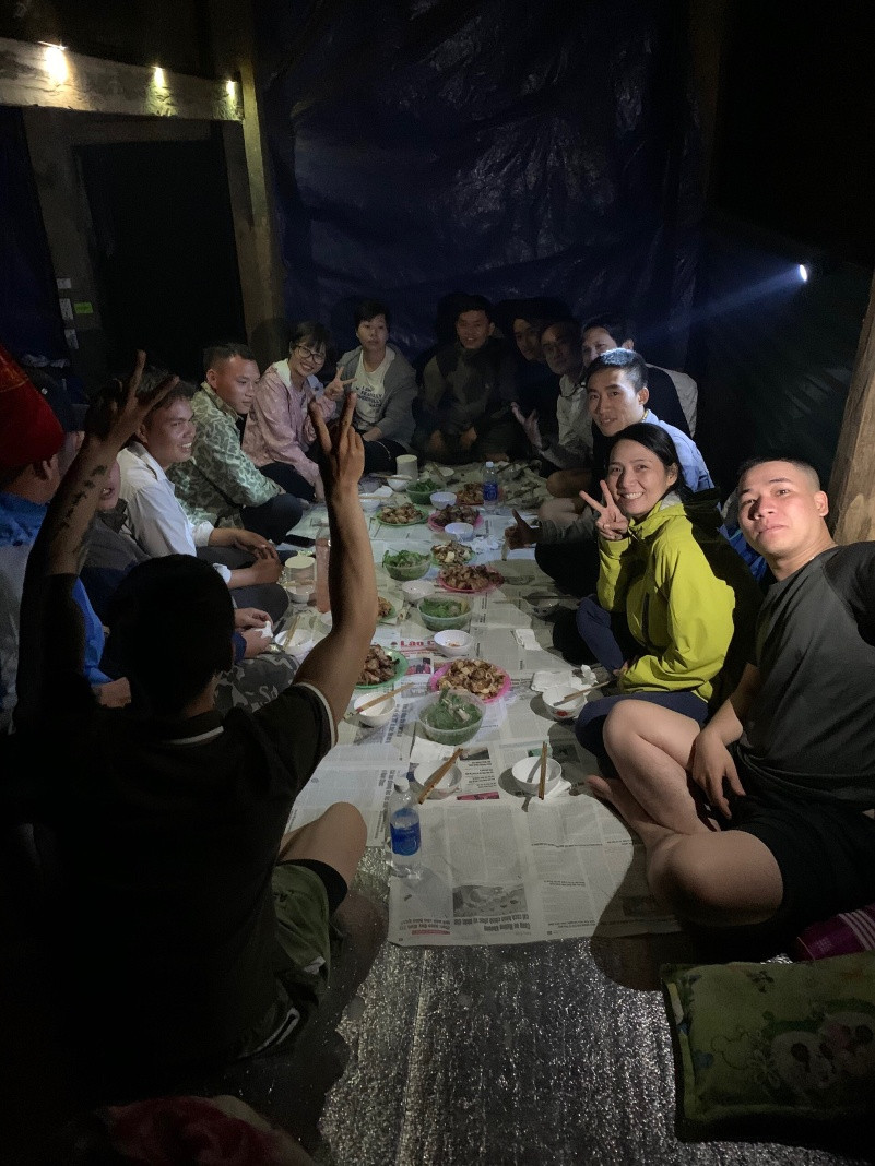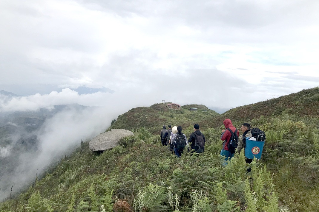 The majestic terraced fields of Y Ty during the ripe rice seasonA herd of goats grazes on the mountainsideTravelers cross the rugged mountain trailThe pristine forests of the Hoang Lien Son Mountain Range with its captivating sceneryThe challenging path requires travelers to pass through thickets and bushesForest flowers beckon travelersThe closer the mountain peak, the more impressive the sceneryTravelers feel as if they were walking among the cloudsThe ethereal sea of cloudsEvenings are spent dining and resting at mountain homestaysCurrently, makeshift sleeping places serve mountain climbersCapturing impressive photographs togetherThe most impressive rock formation near the summit of Lao ThanTaking photos amidst the drifting sea of cloudsLao Than Peak marked with a summit marker indicating an elevation of 2860m