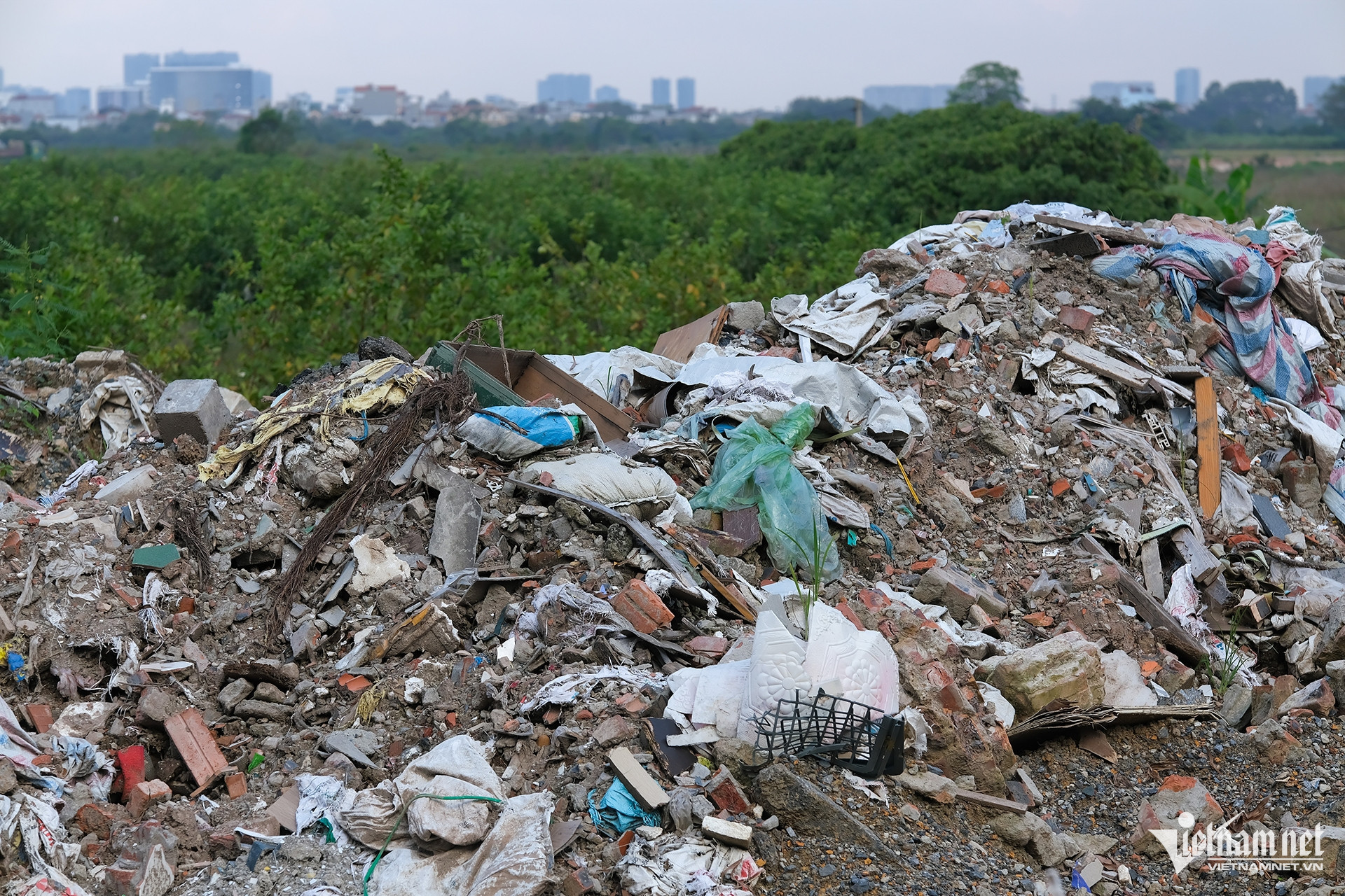 The waste consists primarily of construction materials, debris from work sites, and household waste, resulting in massive piles after several days of illegal dumping.