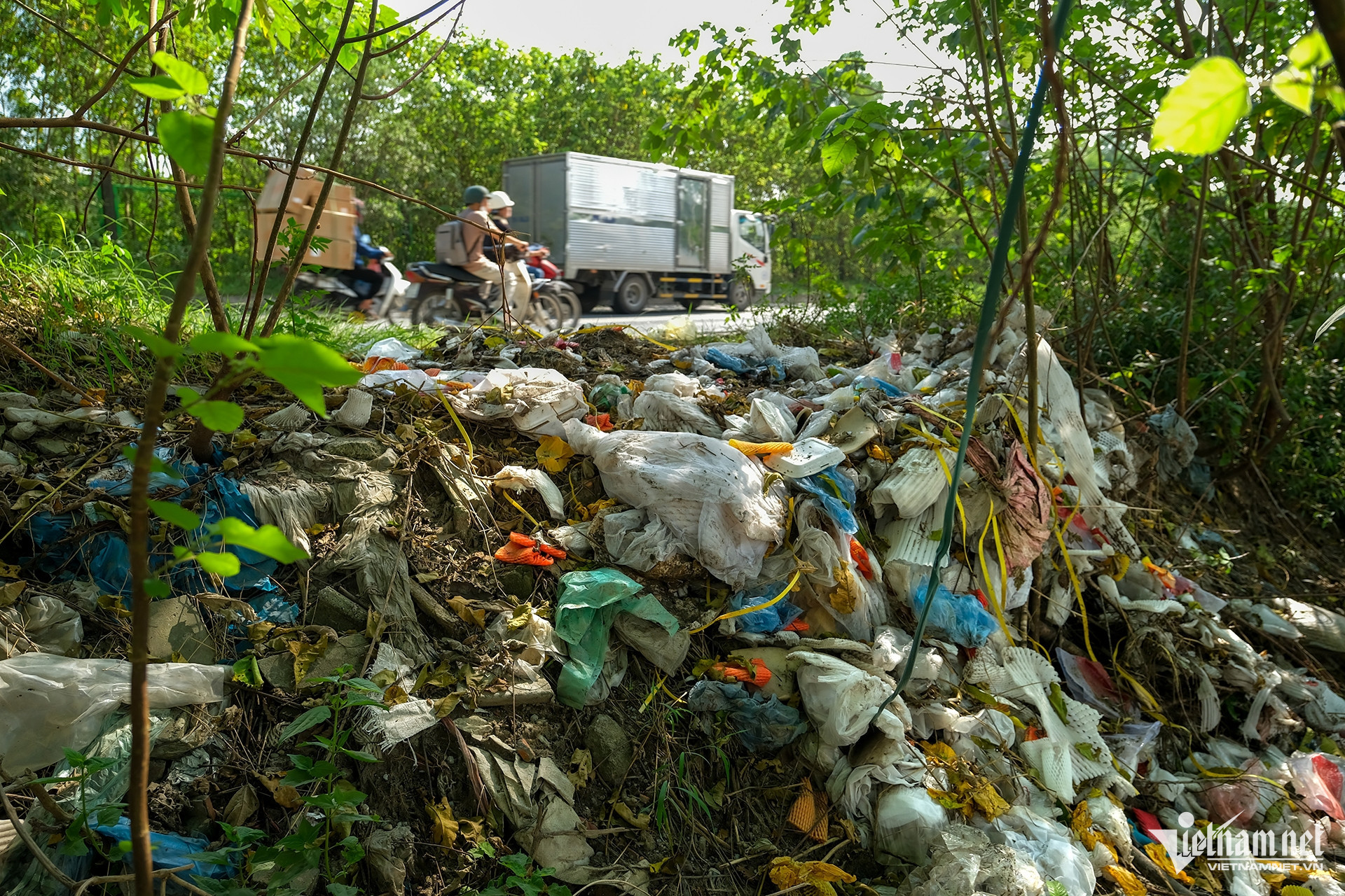 Abandoned household items and broken appliances are also seen discarded along the roadside. Mountains of waste now line the roadways, particularly the section passing through Song Phuong, which lies within the construction area for the Ring Road 4 project.