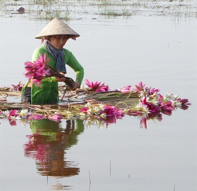 Lê Thị Kiều Minh, a water lily grower in Mộc Hóa District, said she had been growing and collecting the flowers for more than ten years.