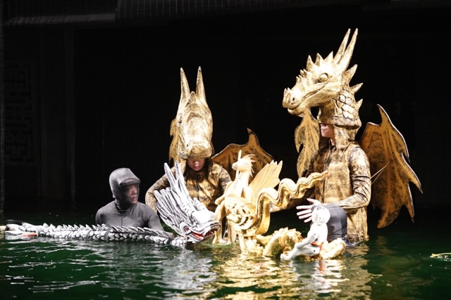 Long said the piece was inspiring for all the actors because it was the first time they had appeared in front of the audience, giving them a chance to see them react to their performance and the puppets. With the role of Land Dragon, Lê Thu Huyền has to carry a 10kg puppet to perform on stage and underwater. Other artists have to control life-size giraffe puppets.