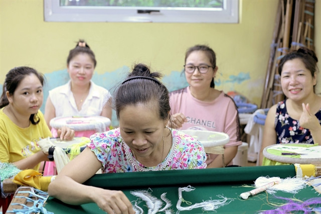 | Needleworkers at Tú Thị Hand Embroidery shop in Quất Động. VNS Photo Đoàn Tùng. |