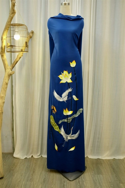 | Women's traditional long dress is the main embroidered product at Tú Thị shop. Photo courtesy of Tú Thị. |