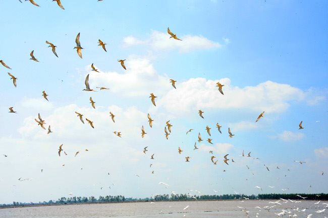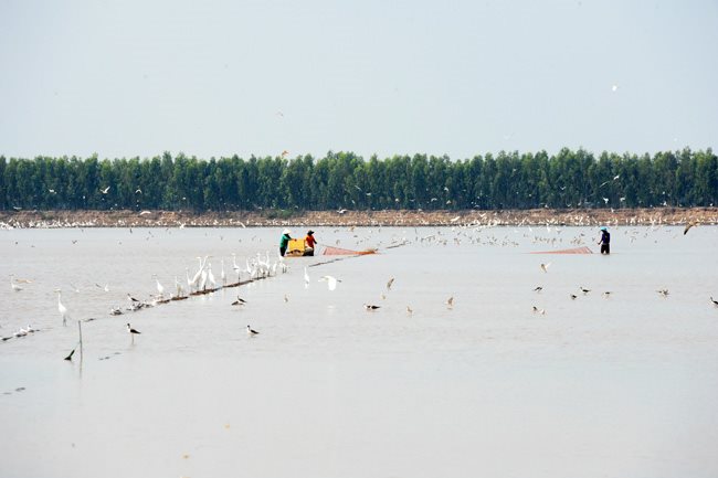 Recently, when local farmers were preparing for the winter-spring rice crop, they witnessed thousands of white storks flying to feed themselves on the vast rice fields.