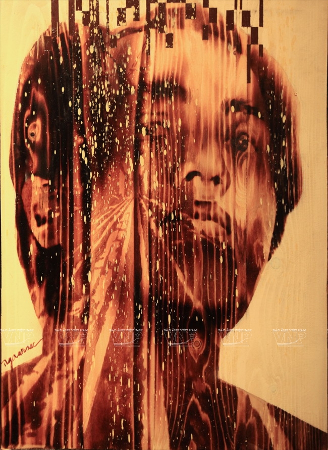 Following the principle of using fire to burn the images, Ngo Van Sac has created beautiful works of art.