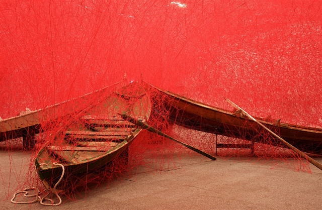 A Tide of Emotions is a network of red threads connected to old boats full of history and stories, containing countless metaphors about Việt Nam, where the coastline stretches as far as the eye can see. Photo courtesy of VCCA |