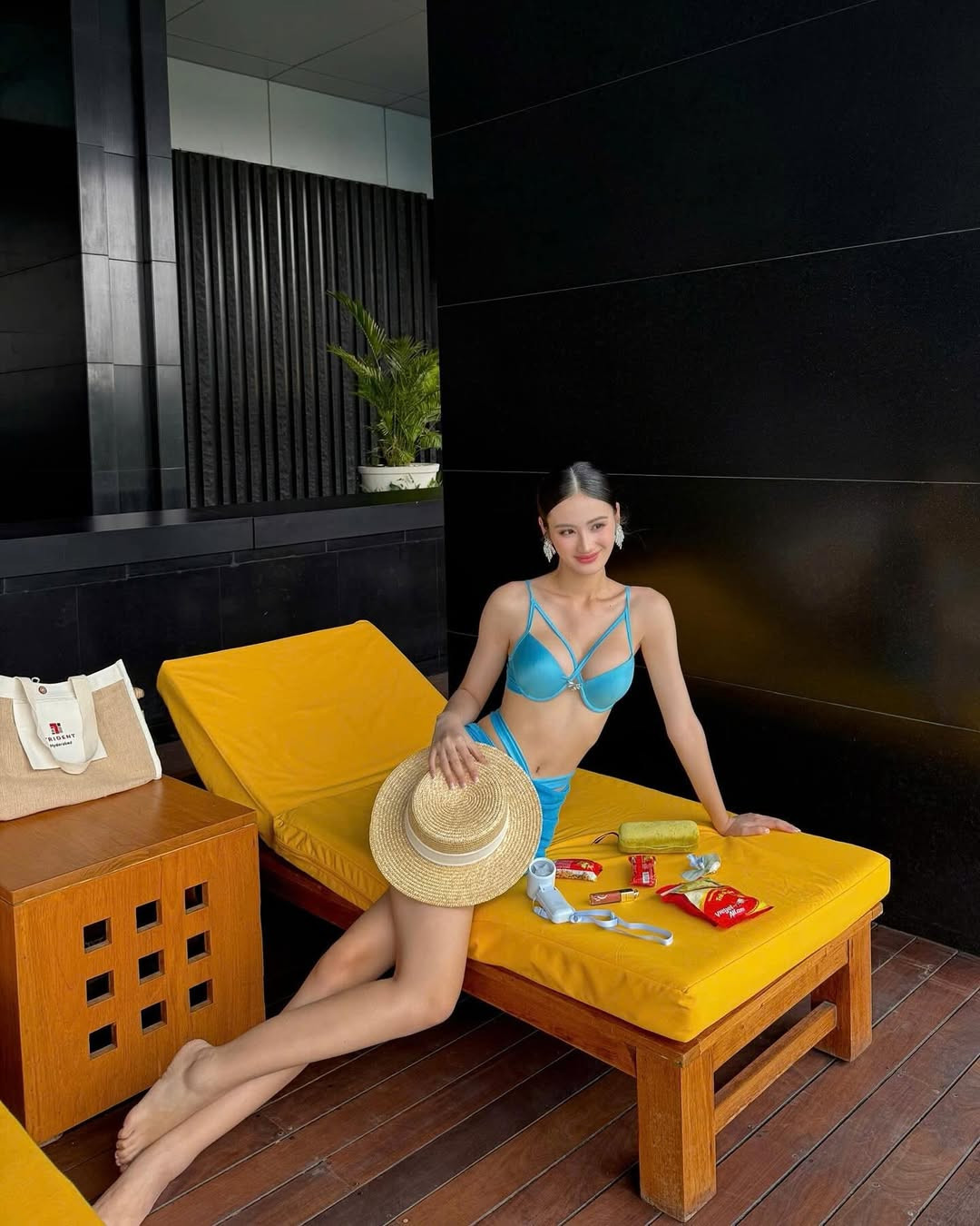 During an outdoor event, Y Nhi caught attention in a striking blue two-piece swimsuit, confidently displaying her toned figure and smooth, radiant skin.
