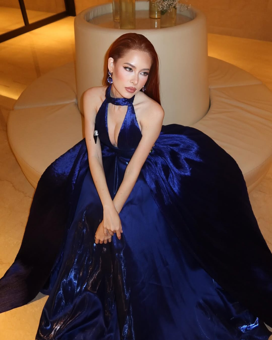 At the May 13 event, Y Nhi stood out among the contestants in a sophisticated blue dress.