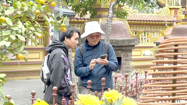 | Nguyễn Việt Tiến shares his knowledge with South Korean tourist Kang Shin Jung. VNS Photo Lê Hương |