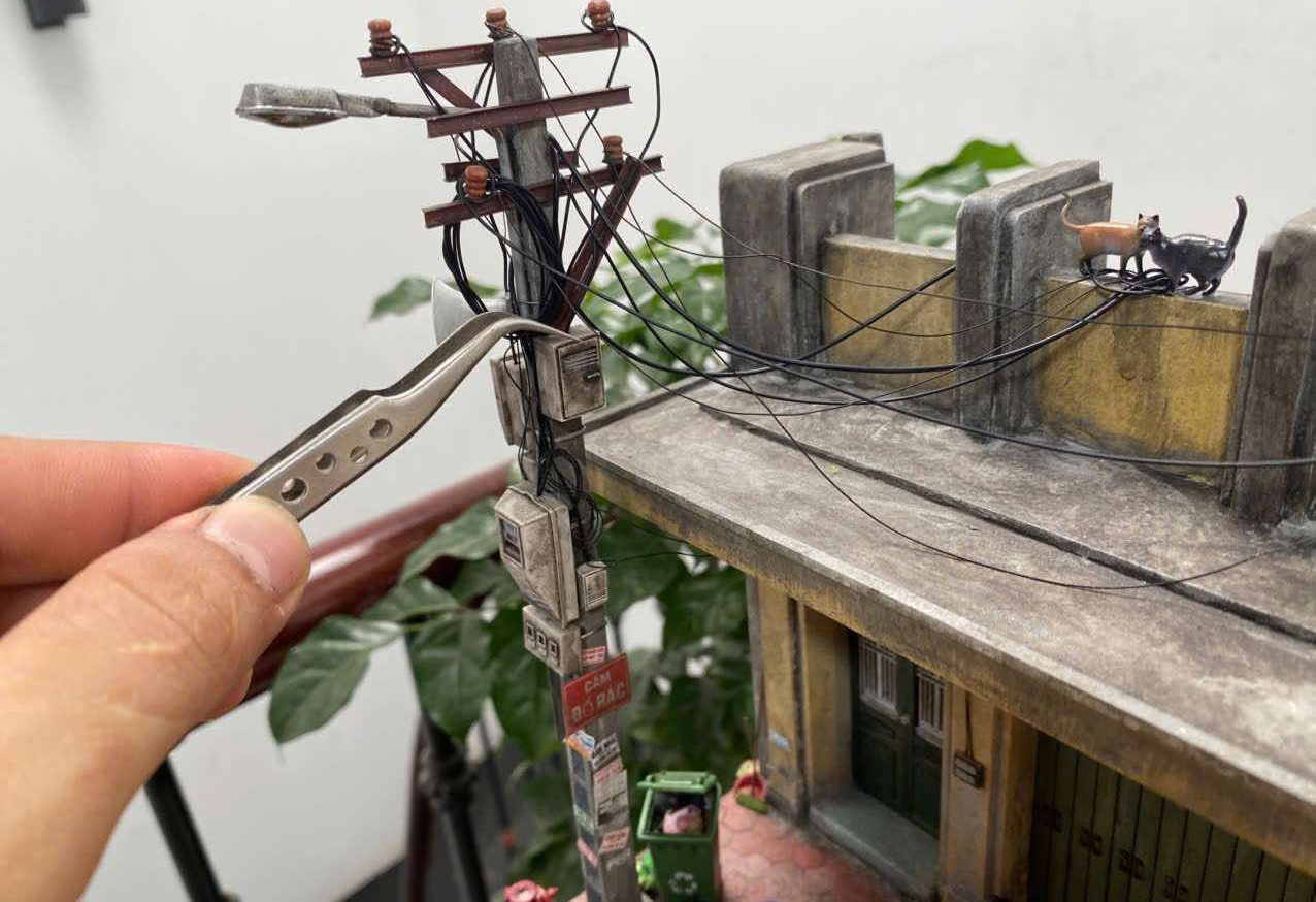 After graduating from university in Thanh Hoa, Cuong moved to Hanoi for work, starting at a model-making company. Two years later, he decided to strike out on his own. The idea came one afternoon while wandering through the Old Quarter. Sitting at a sidewalk tea stall, watching the worn walls, old lightbulbs, sprawling trees, and street sounds, he was inspired to recreate these familiar scenes.