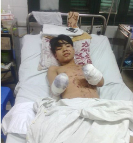 Duong Huu Phuc was working as a mechanic when an oxygen tank exploded causing his devastating injuries.